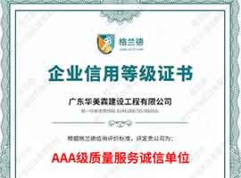 AAA級企業資信等級證書